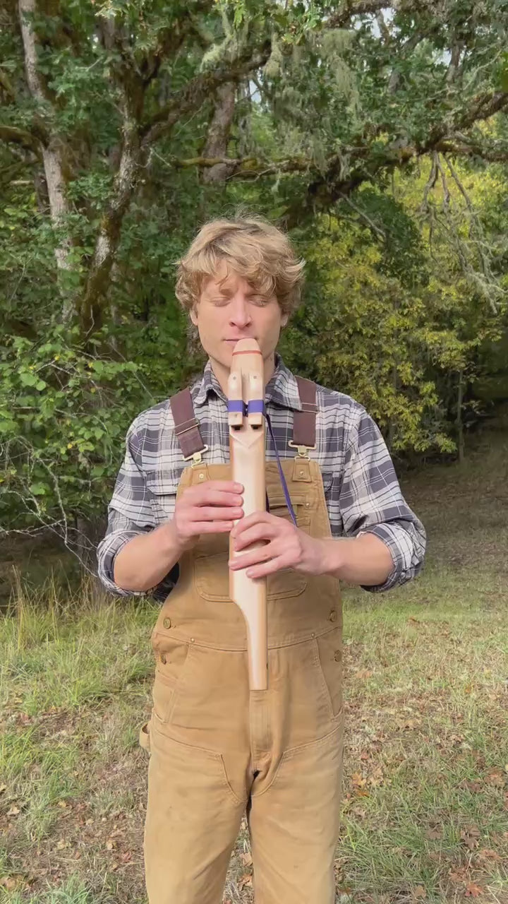 This is a high range drone flute in C meaning it has a crisp, resonant and powerful sound. The drone side is tuned to a G which is a fifth lower. That gives it a deeper more haunting sound, and balances very well with the higher pitch of the flute. It is an Aeolian tuning which has a dreamlike, Eastern European enchanting quality. This is a perfect drone to start with, the finger spread being very comfortable - for beginners to advanced players.