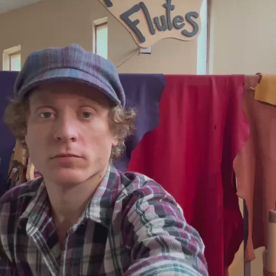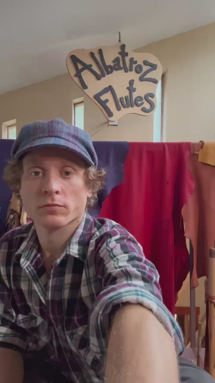 Please note, It might take us a few weeks to make your flute. Wood is a natural material and each piece is unique. Your flute will be made out of the same wood but might have a different grain than the picture. All of our flutes use a water based finish in and out. The leather straps will be deer or elk depending on availability.